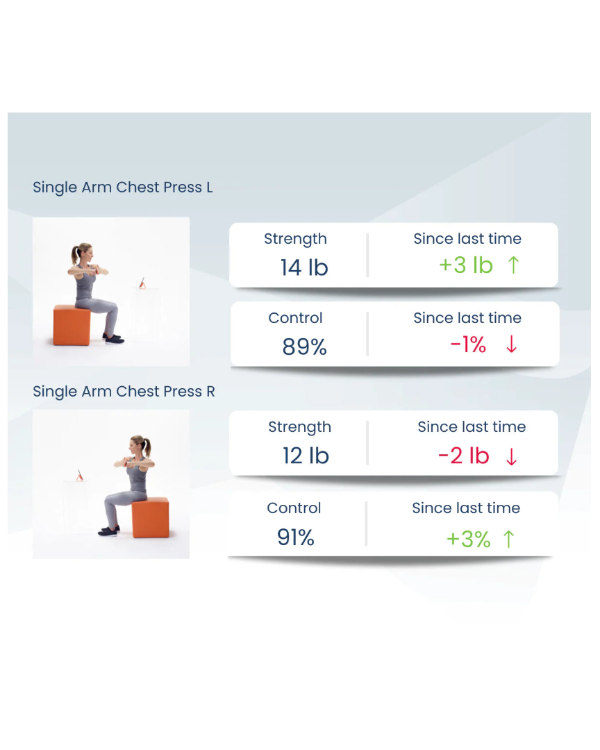 - Feedback w czasie rzeczywistym: monitoruj siłę, symetrię mięśniową i postępy w aplikacji mobilnej.