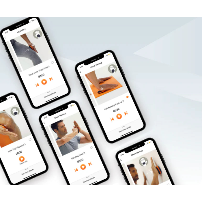 - Ponad 100 ćwiczeń: bogata biblioteka treningów izometrycznych na całe ciało dostępna w aplikacji.
